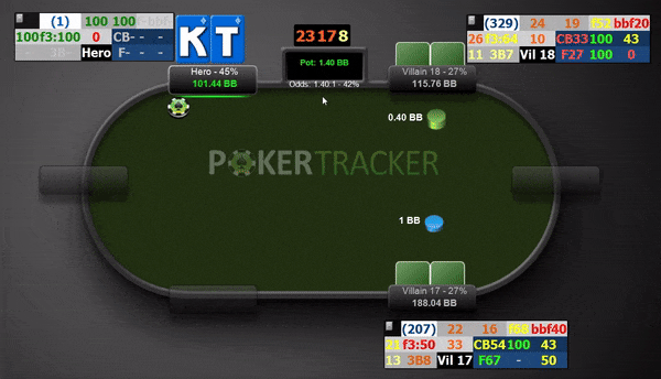 A HUD meticulously designed to group relevant statistics together to make quick reads and exploitative plays.