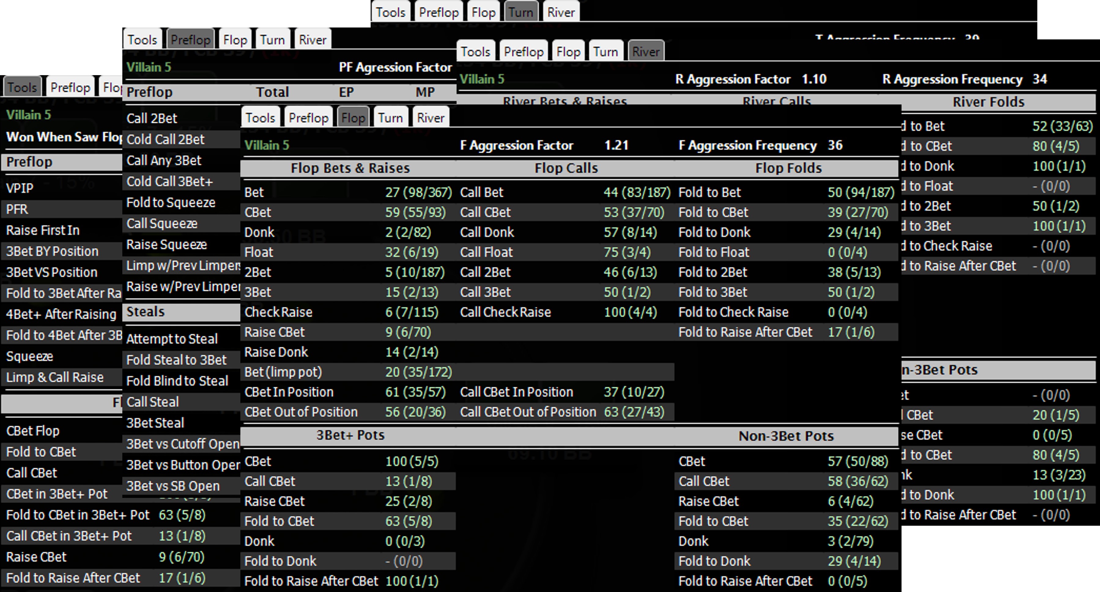 A HUD with every key statistic that exposes ALL of your opponent's tendencies.
